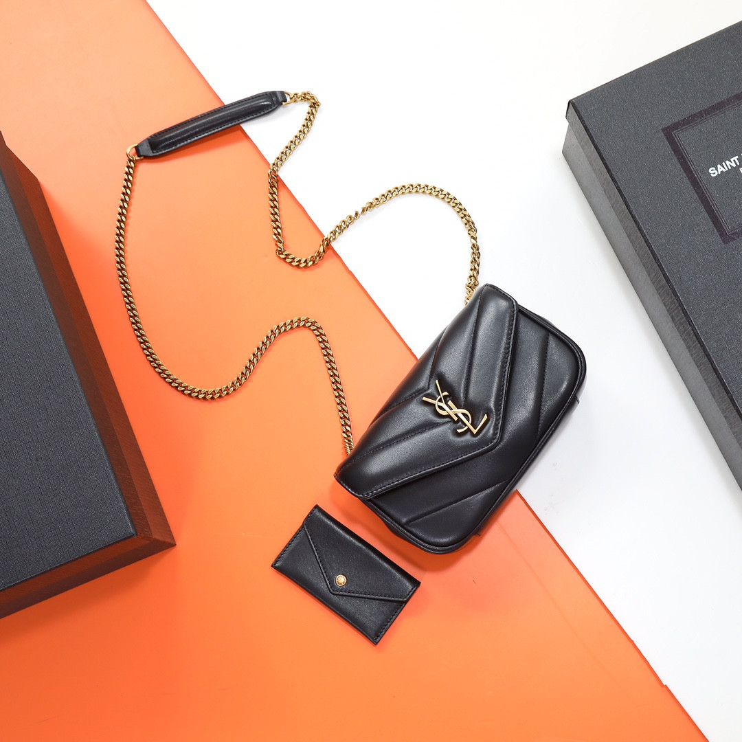 Y*L loulou medium in quilted leather all black 12.5 x 8.6 x 3.5 inches