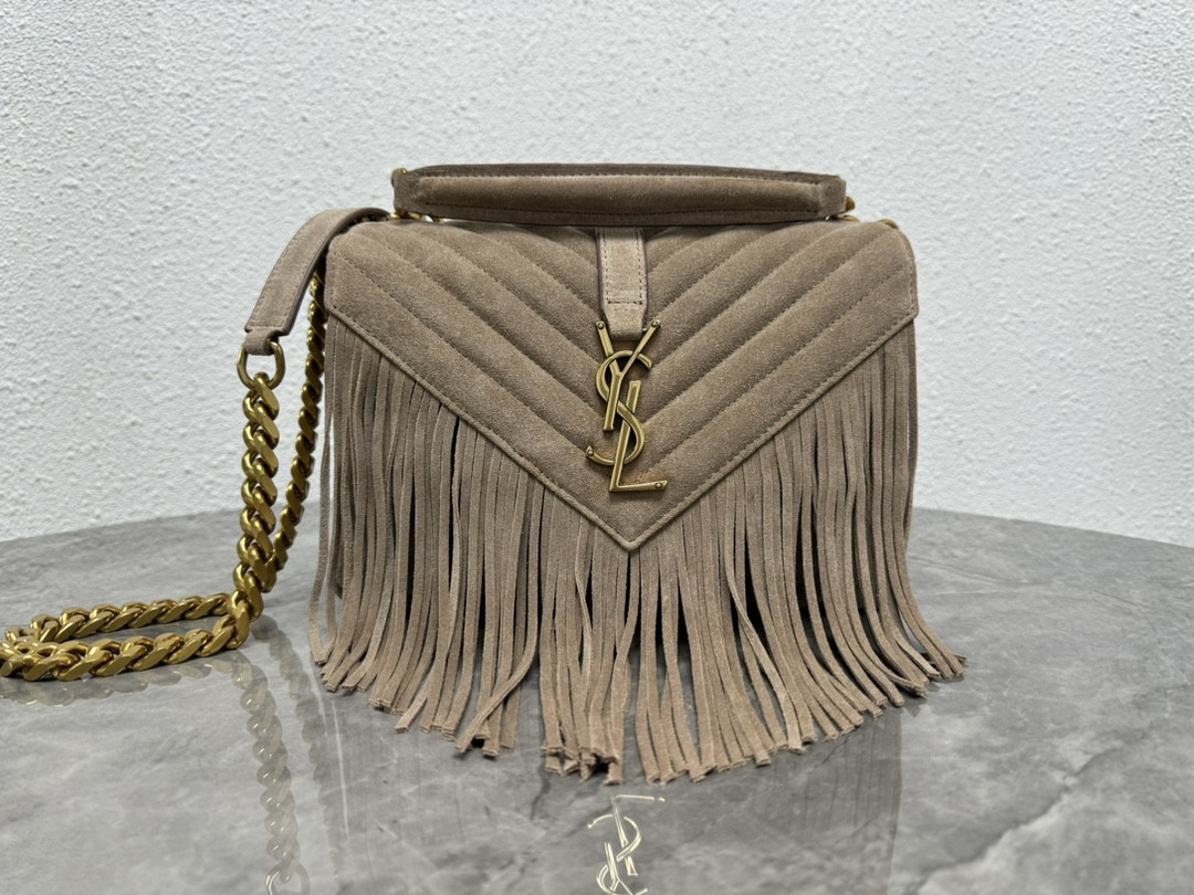 Y*L college medium in quilted suede gray 9.4 x 6.6 x 2.5 inches