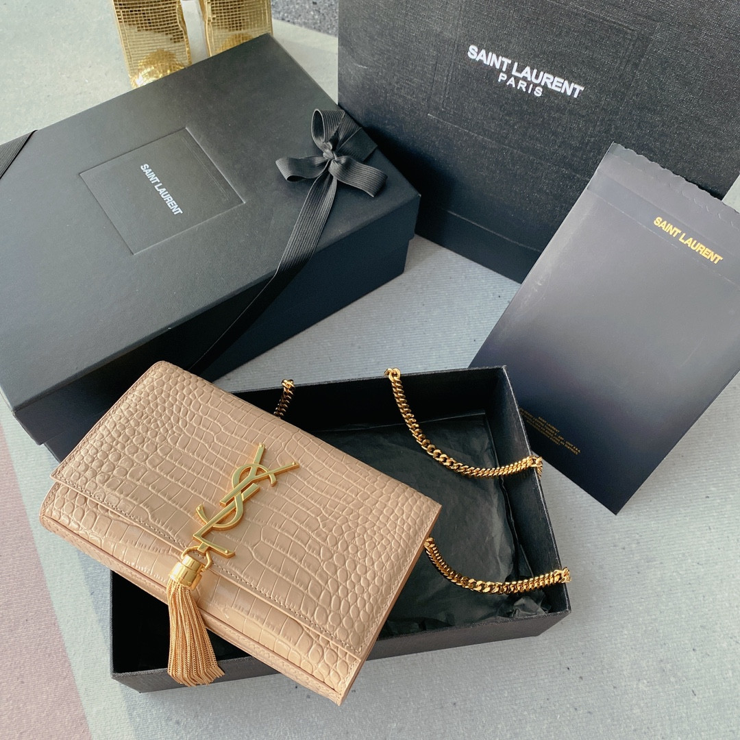 Y*L kate medium tassel in crocodile-embossed leather black 9.4 x 5.7 x 2.1 inches